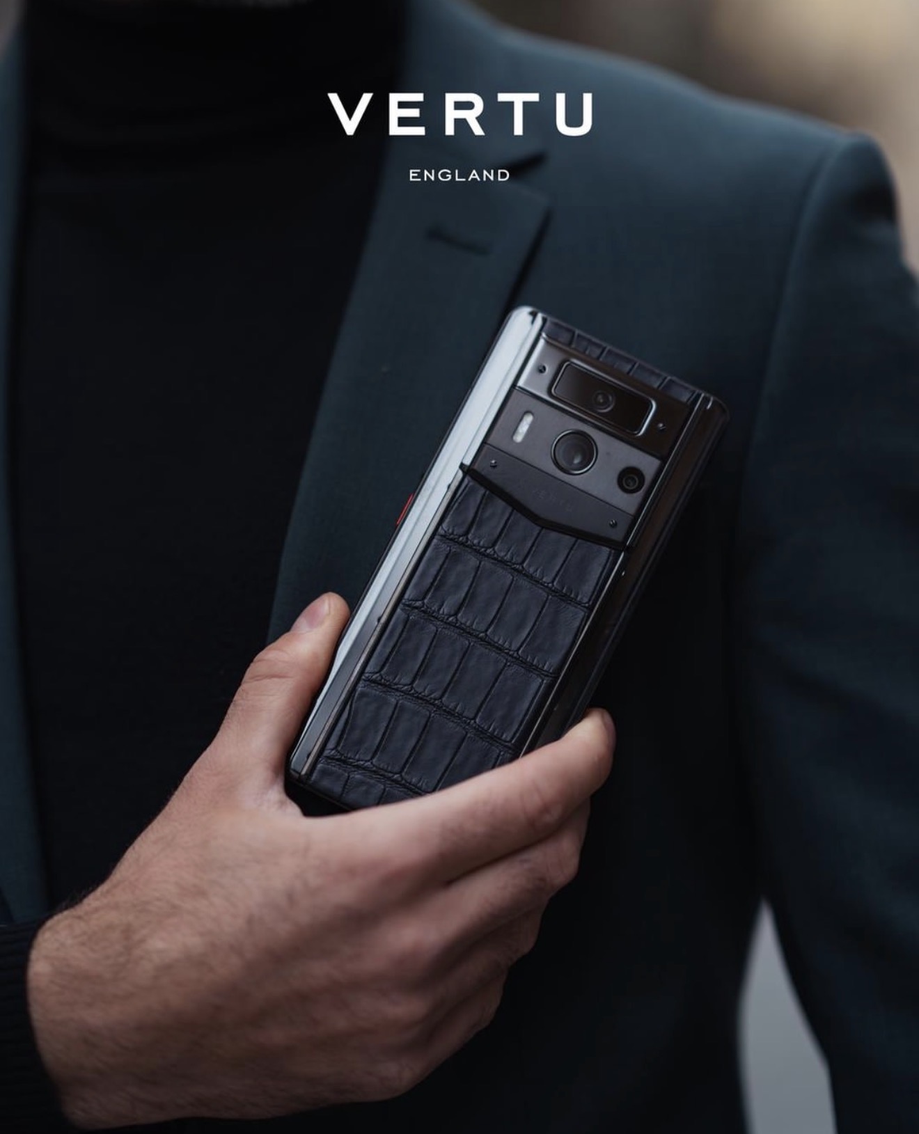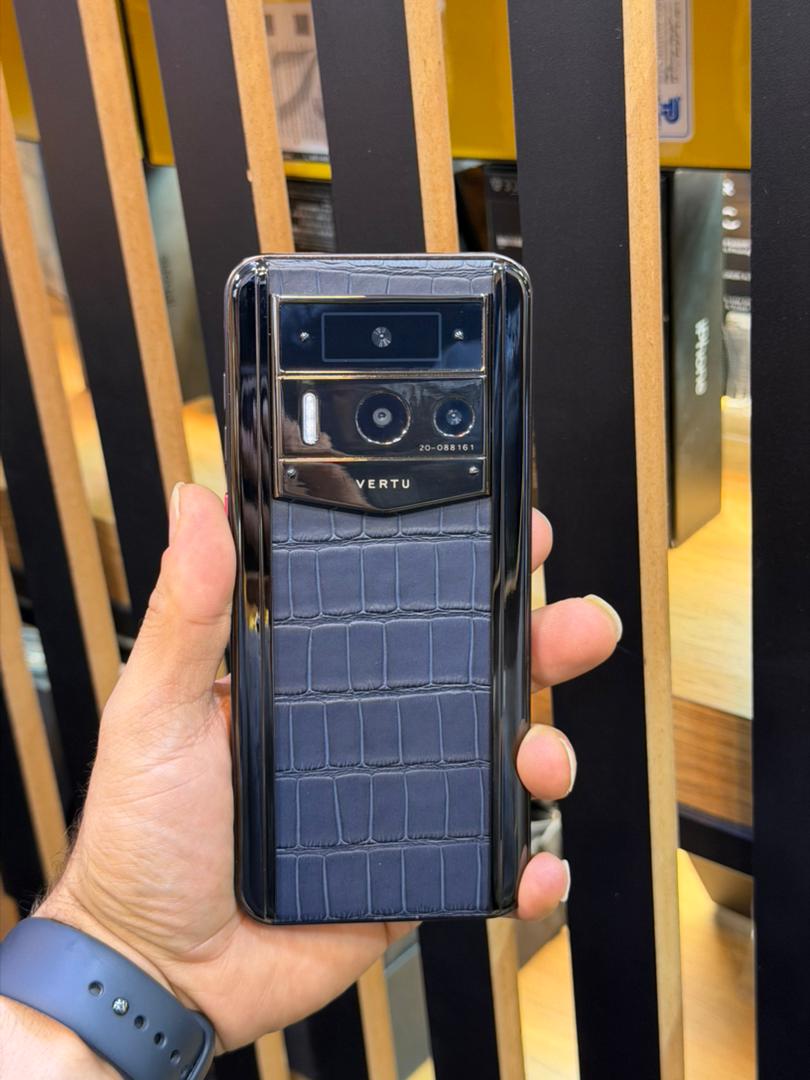 گوشی لاکچری ورتو متا ورتو۲ چرم سرمه ای طرح کروکودیل و بدنه مشکی