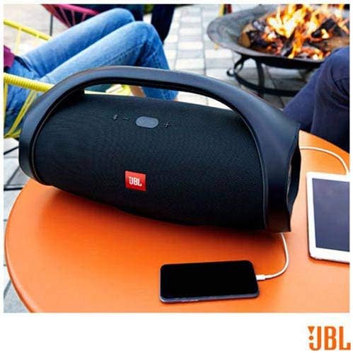 JBL Boombox که به عنوان قوی ترین و قابل حمل ترین اسپیکر بلوتوثی ساخته شده است، صدای هیولایی را همراه با قدرتمندترین بِیس ارائه میدهد. از شارژدهی بین6 الی 12 ساعت بدون از دست دادن زمانی برای موسیقی لذت ببرید! تصور کنید با یک بار شارژ از طلوع تا غروب خورشید با موزیک مورد علاقه خود زمان صرف میکنید! با استفاده از باتری بسیار قدرتمند و شارژ دوگانه ، به عنوان پاوربانک دستگاه های خارجی خود را در هر زمان شارژ کنید و همزمان موسیقی را به صدا درآورید! JBL Boombox به اندازه کافی مستحکم است و دارای IPX7 ضد آب است که در برابر هر آب و هوا و رطوبتی مقاومت میکند؛ همچنین با اثر مقاومتی در برابر گرد و غبار و ضربه. قابلیت بهینهسازی صدا بین حالت های داخلی و خارجی (فضای باز یا بسته) کلید انتخاب دارد. علاوه بر این، اگر موسیقی حجیمتر الزامی است، میتوانید بیش از 100 بلندگوی دارای قابلیت JBL Connect+ را در محدوده بلوتوث تنها با فشار دادن یک دکمه متصل کنید!